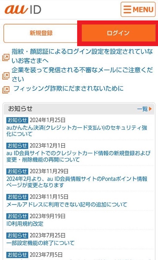 ※au IDログインがお済でない場合、ログイン画面が出る場合がございます。